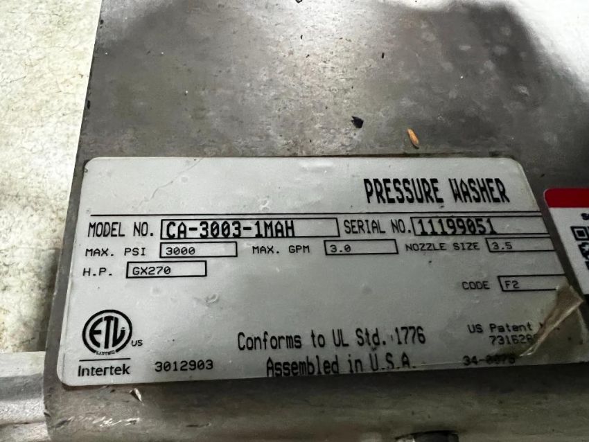 Mi-T-M Mobile Pro Pressure Washer, Model #C!-3003-1MAH, Serial #11199051, Max PSI 3000, Max GPM 3.0, Nozzle Size 3.5, Honda GX270 Engine. Located in Mt. Pleasant, IA